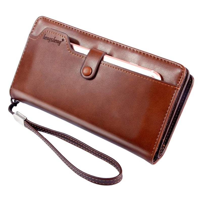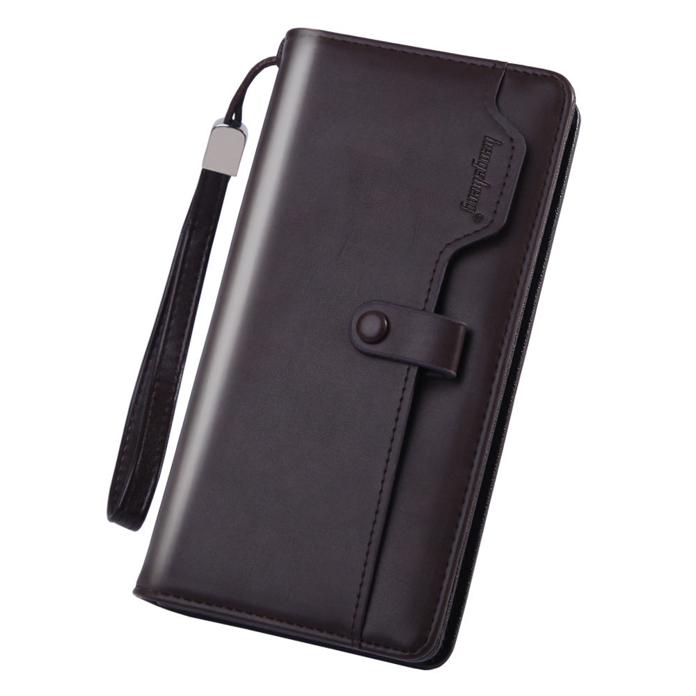 Men's Leather Zip Around Wallet with Multiple Card Slots & Phone Pocket