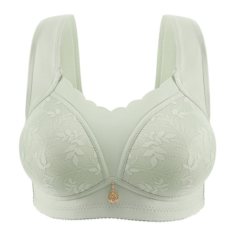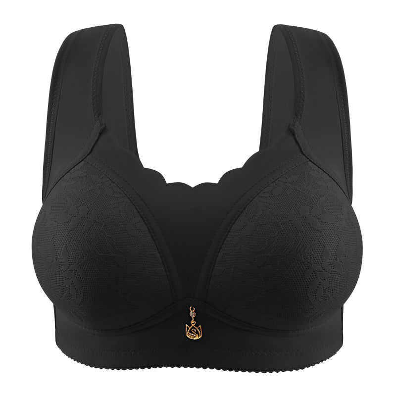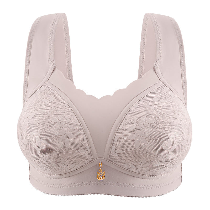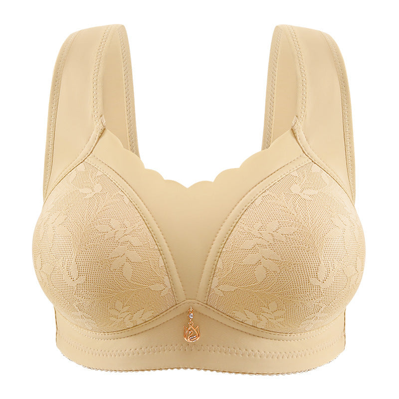 Designed specifically for mature women, this wire-free minimizer bra delivers exceptional comfort while creating a smooth, flattering silhouette. Its elegant lace exterior paired with a soft cotton lining offers breathable support you can rely on every day.