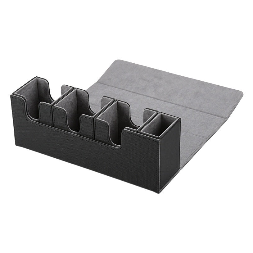 4-in-1 storage design holds cards, dice, and accessories with dedicated compartments