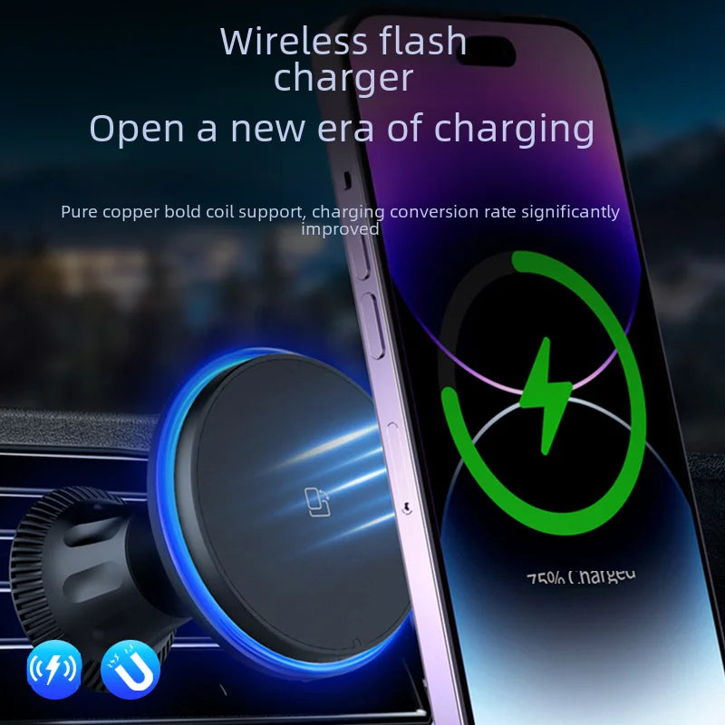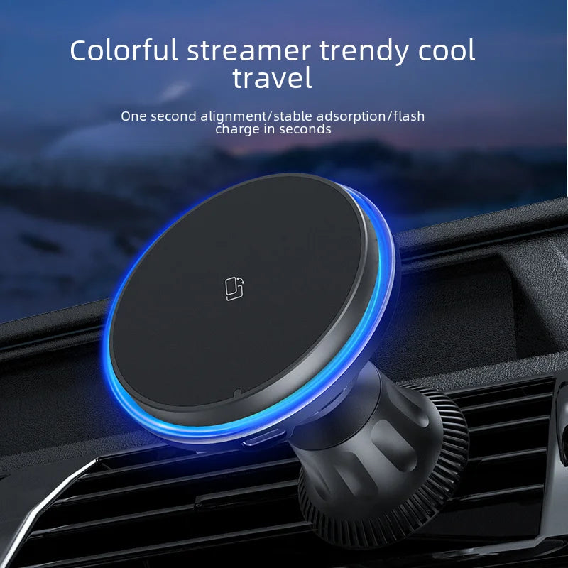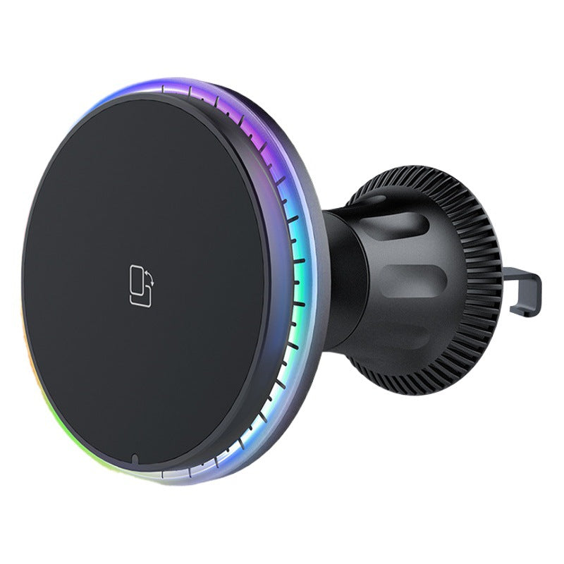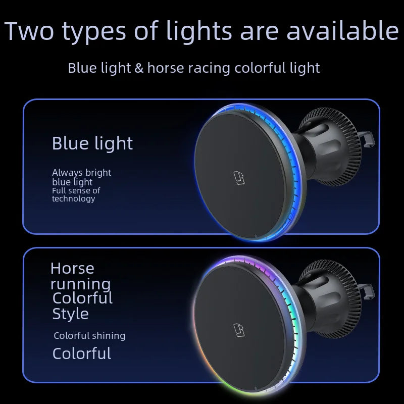 Magnetic Wireless Car Charger, 15W Fast Charging Phone Mount with 7-Color Ambient Light