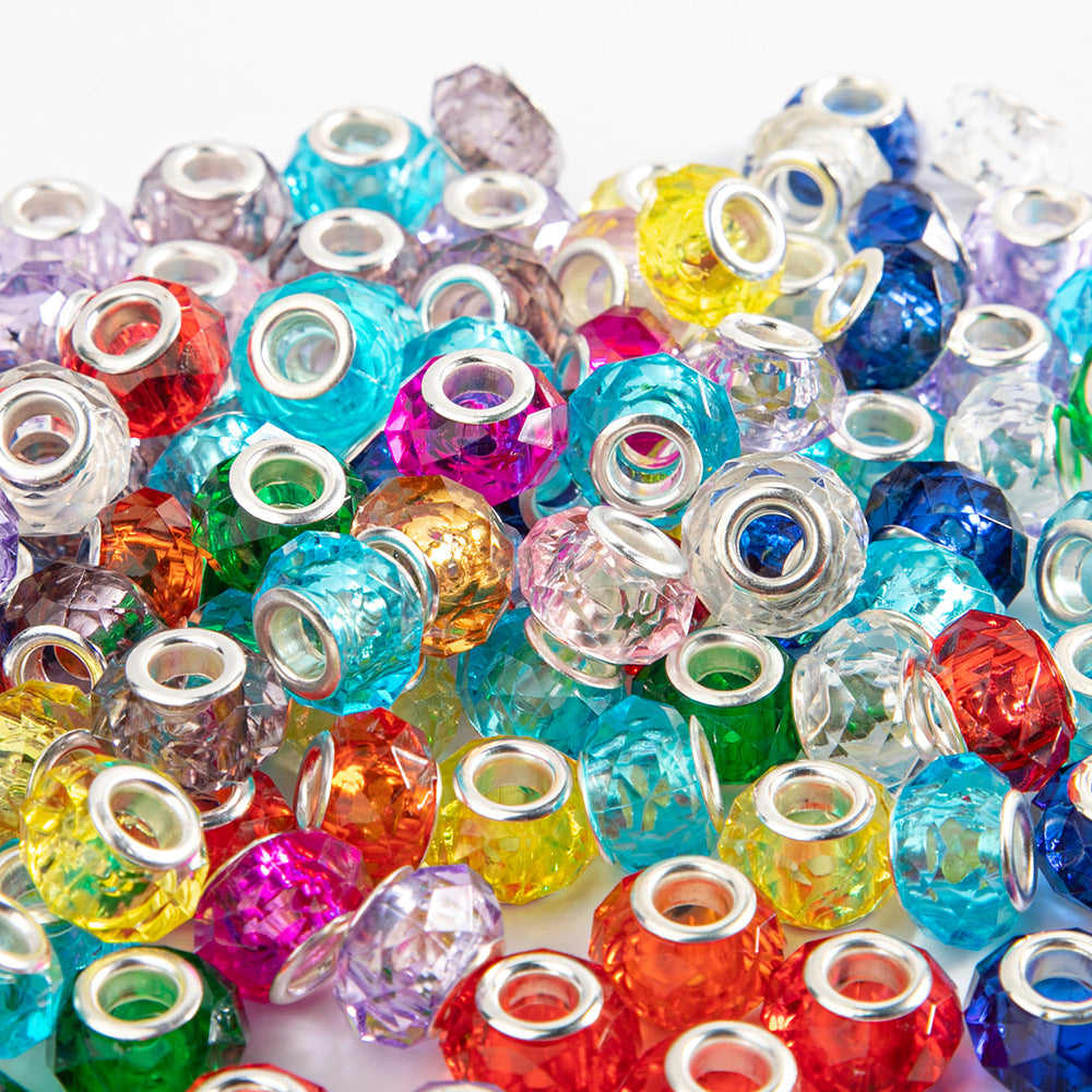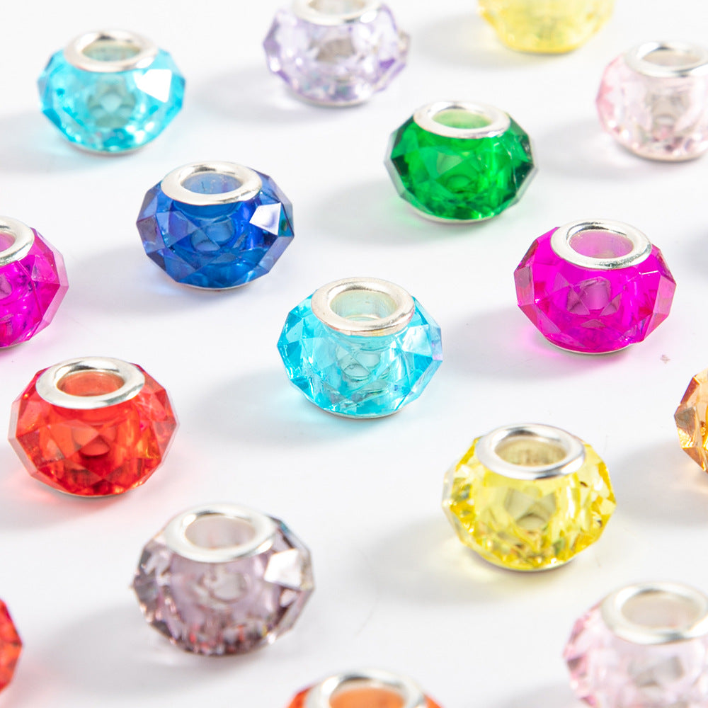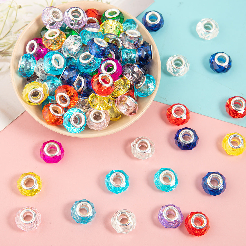 Mixed Cut Faceted Crystal Resin Beads with Large Holes for DIY Bracelet Jewelry Making and Craft Accessories