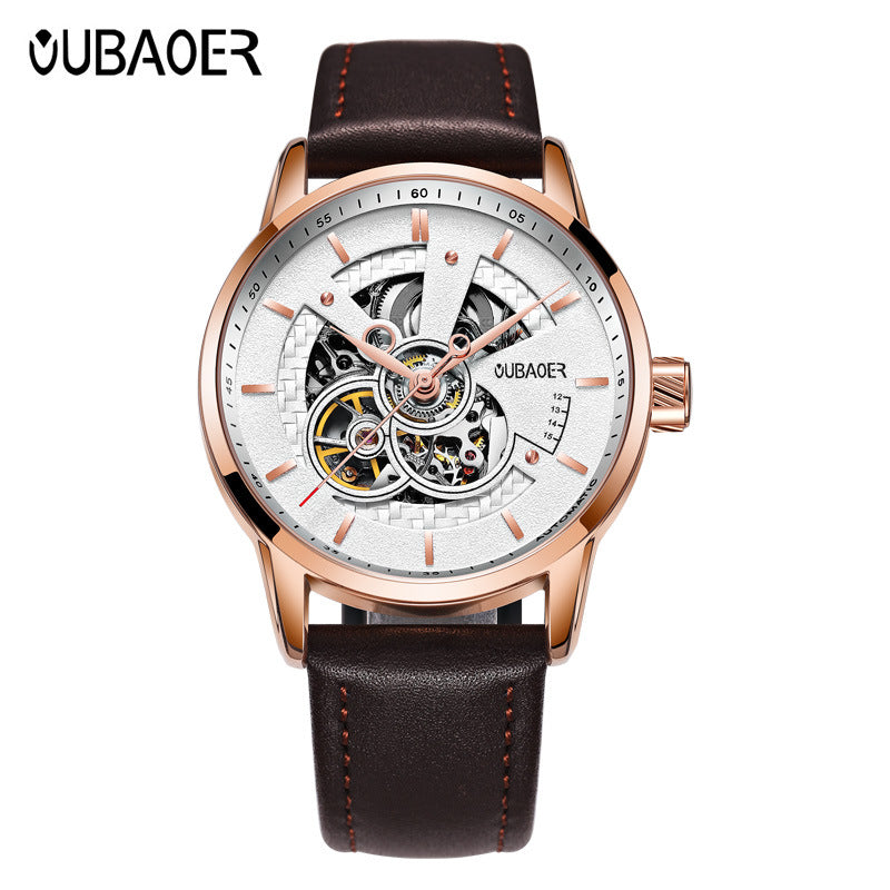 OUBAOER Men’s Skeleton Mechanical Watch, 42mm Large Dial, 30M Water-Resistant Wristwatch with Genuine Leather Strap