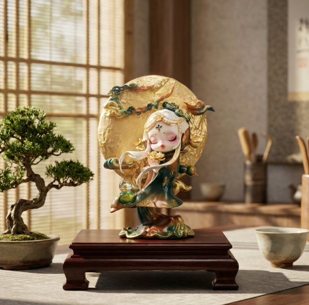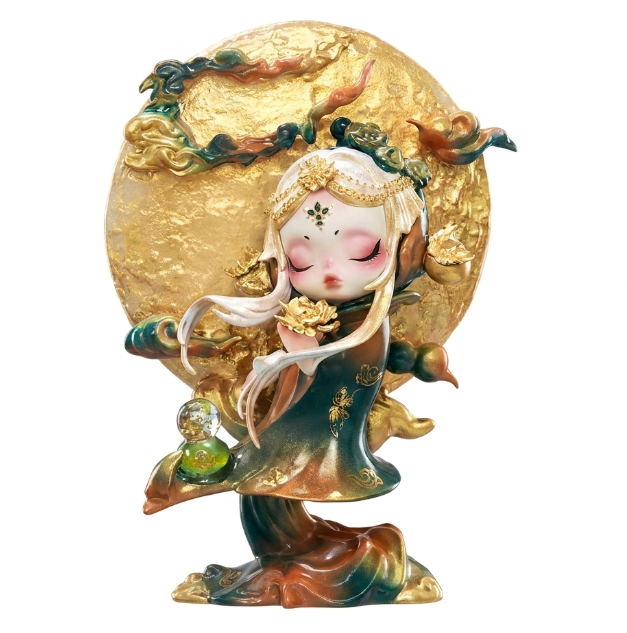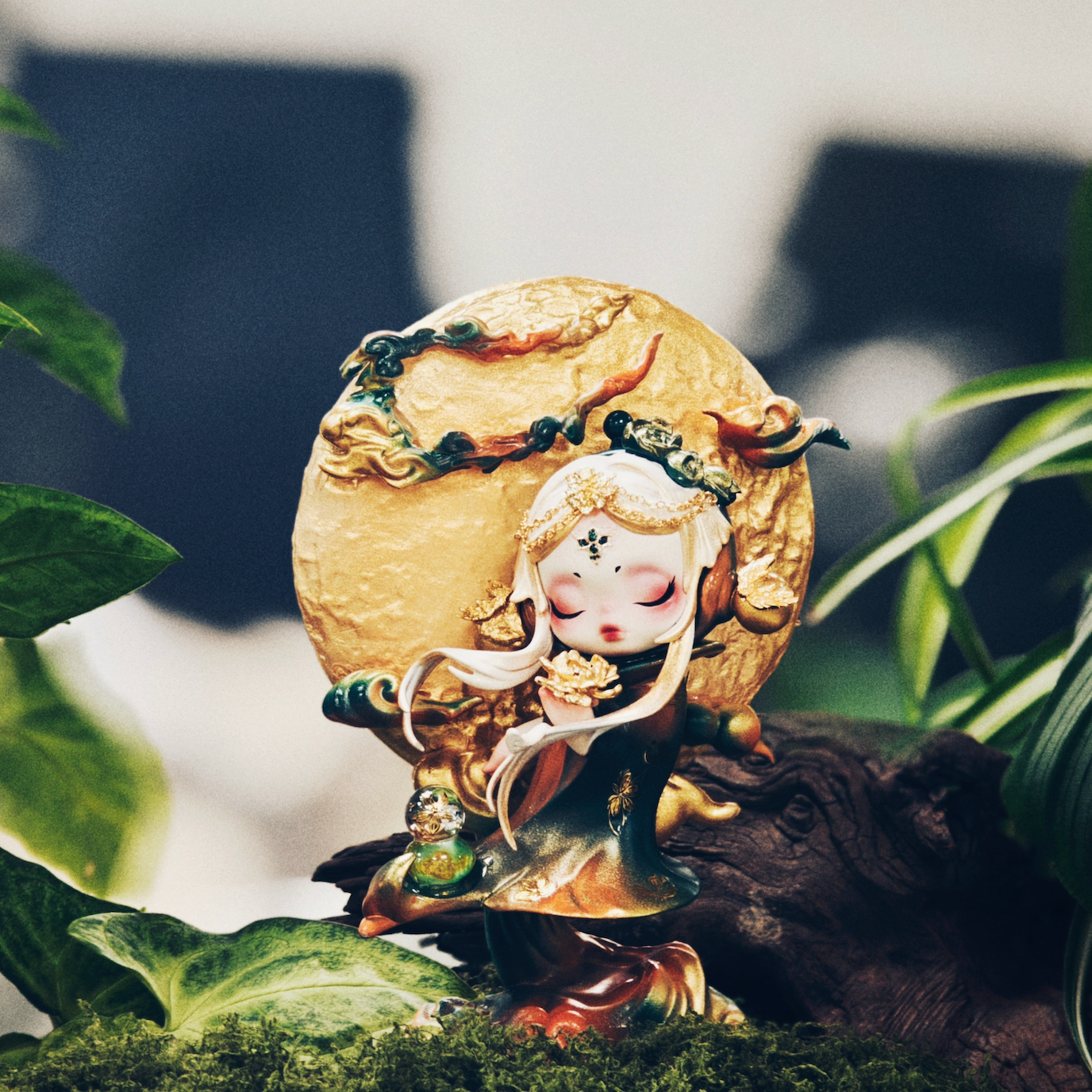 POP MART Skull Panda Custom Repaint, Green & Gold Themed Collectible