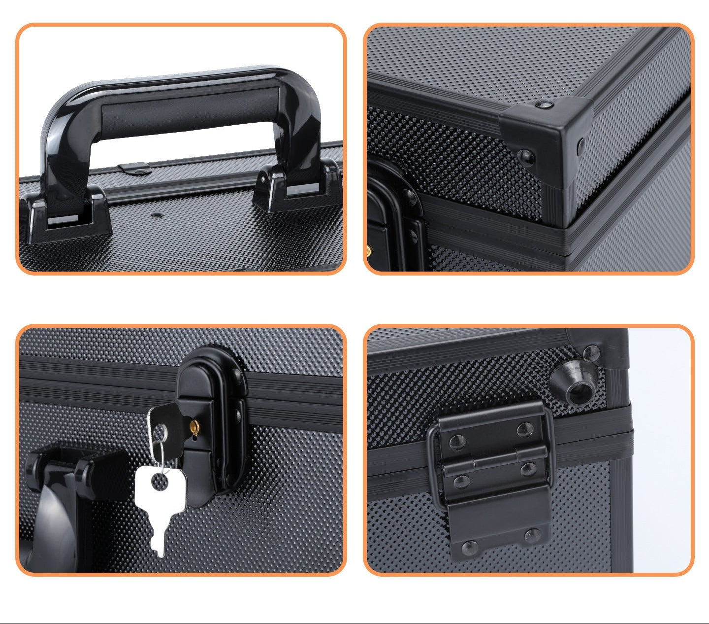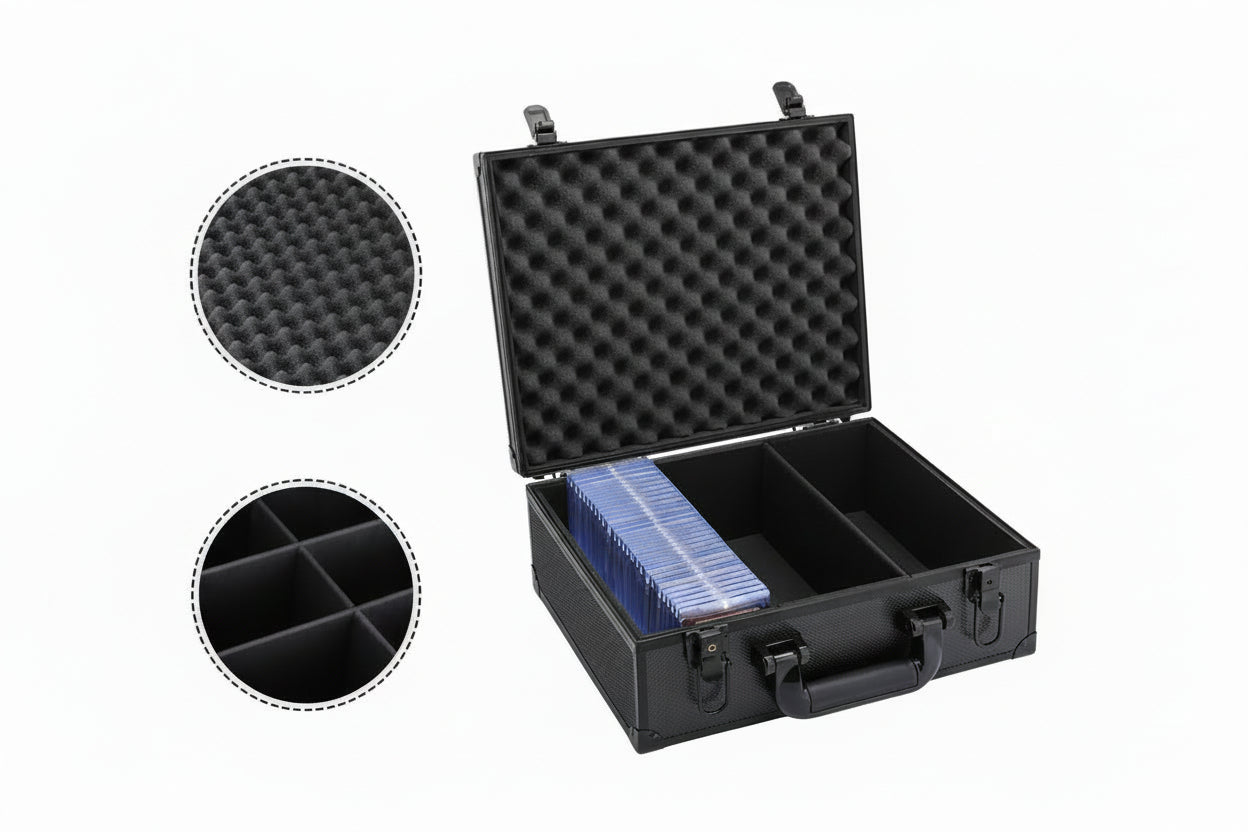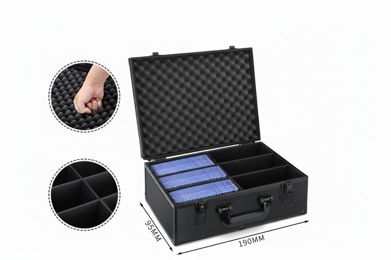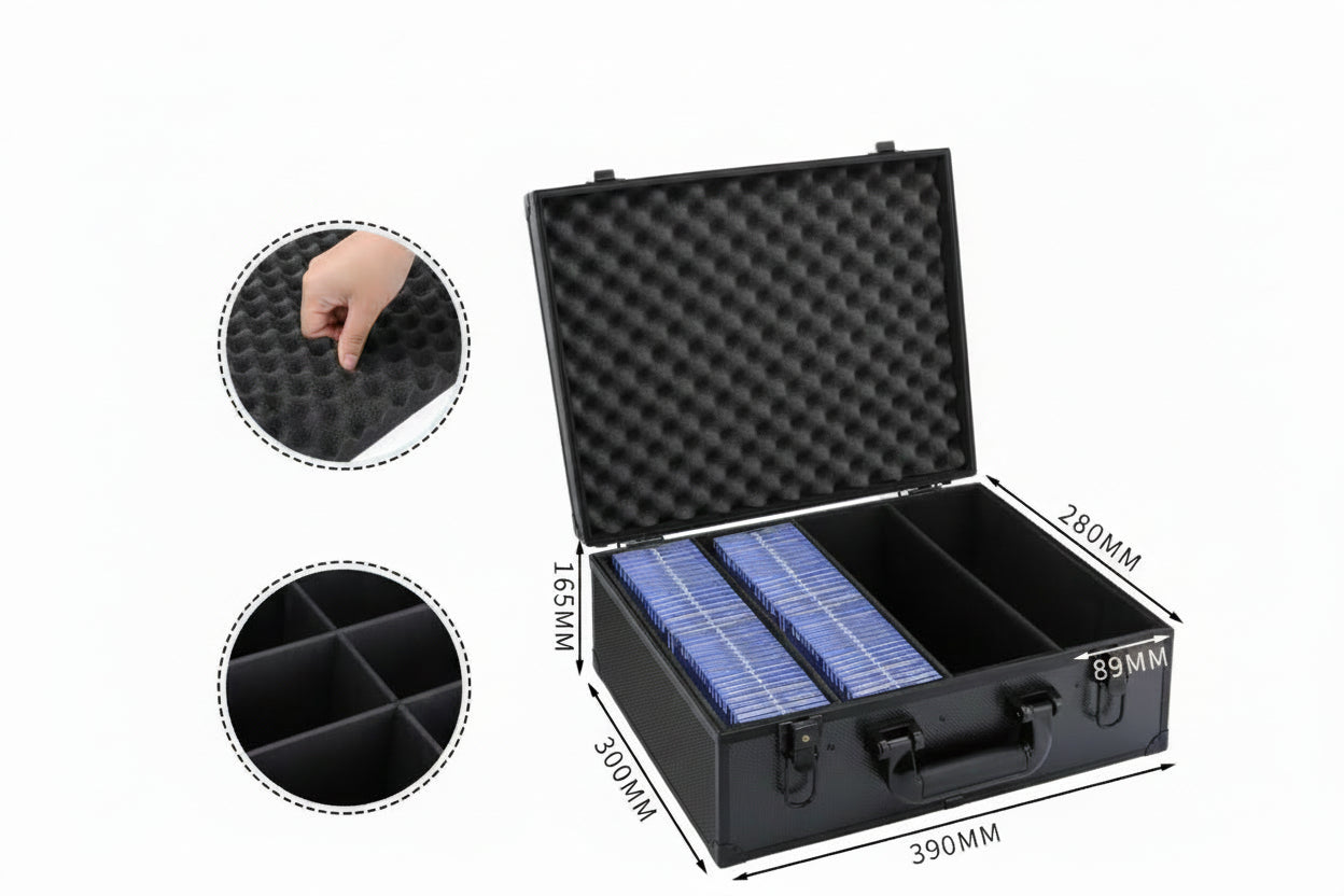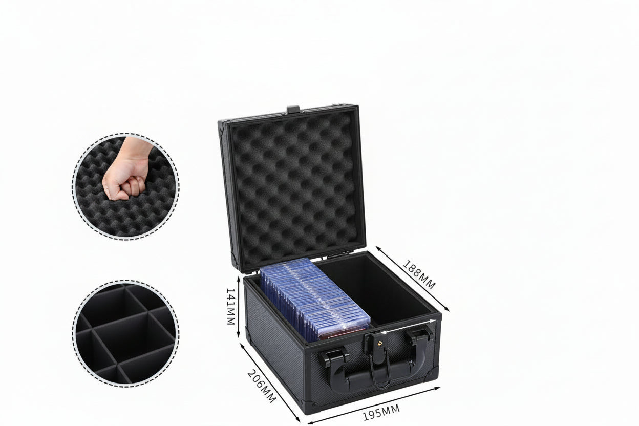 Secure valuable cards with a built-in combination lock and enjoy easy transport using the integrated carrying handle. The double-layer interior features four dedicated card slots, helping keep collections organized and accessible.