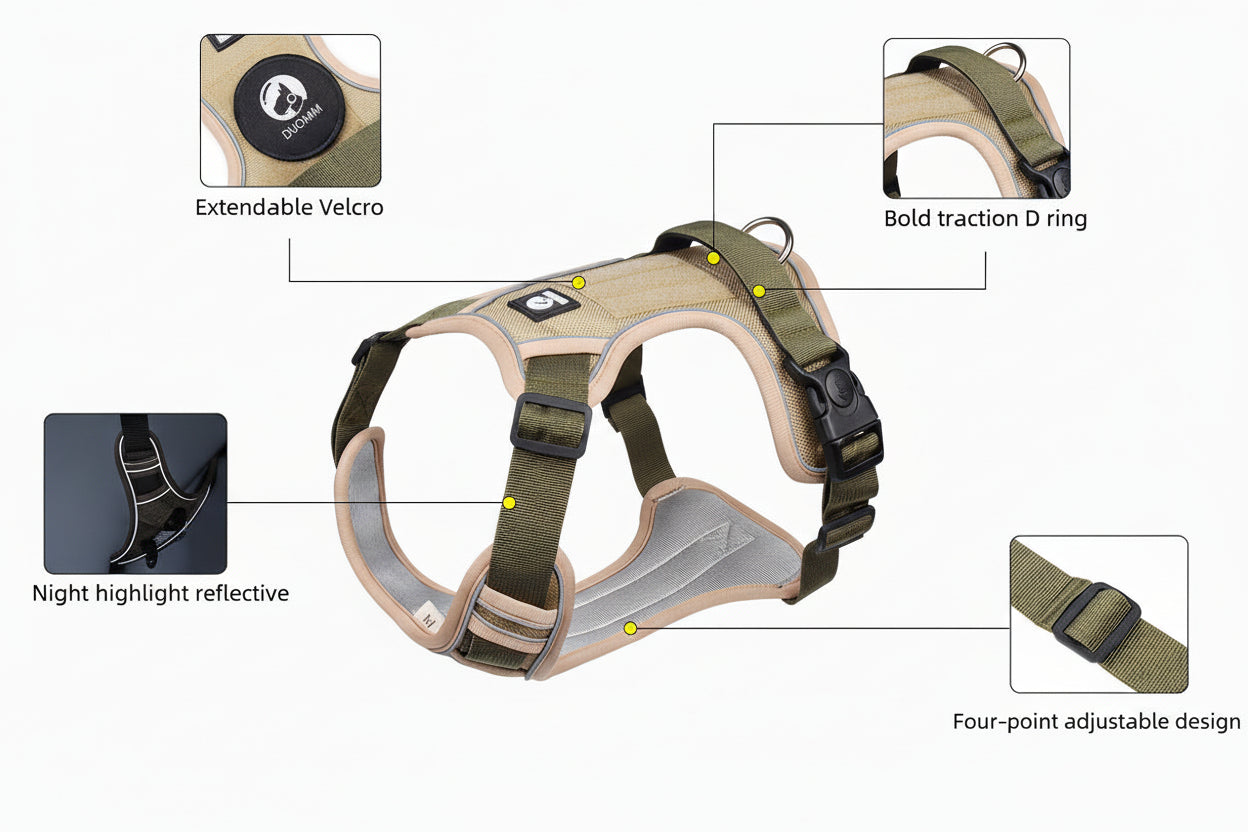 Made from durable polyester with explosion-proof construction, it offers enhanced safety and long-lasting performance even for powerful dogs. The vest-style design helps evenly distribute weight, reducing strain and improving comfort during extended use.
